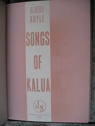 - Songs of Kalua (1927 (Stols), 1931 (De Gemeenschap))