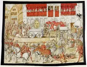 - ↑ Incipit: Pourtraictz au vif des entrees Festins Joustes & Combats matrimoniaux celebrees en la Ville de Bruxelles l'an [1565] entre [...] Alexandre de Farneses [...] et [...] Donna Marie de Portugal