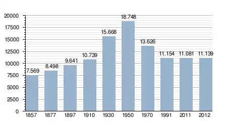 - Bron: INE; 1857-2011: volkstellingen