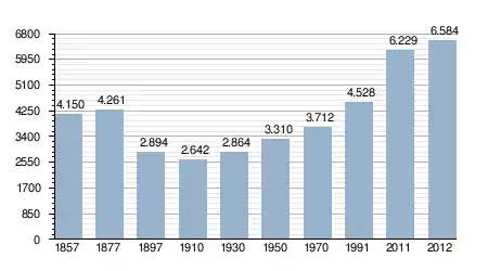 - Bron: INE, 1857-2011: volkstellingen