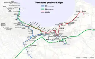 De spoorwegmaatschappij `Chemins de fer sur routes d'Algérie` (CFRA) bouwde en exploiteerde vanaf 1894 een metersporig lokaalspoornet in en rond Algiers. Later werden deze lijnen geëlektrificeerd. De laatste van deze spoor/tramlijnen sloot in 1958.[19] Naast dit streekspoornet werd vanaf 1896 een elektrisch tramnet op 1055 mm spoorwijdte geëxploiteerd door de `Société des tramways algériens` (TA) . De laatste trams reden tot 1960, wanneer tijdens een oproer de trams werden ingerukt en nooit meer terugkwamen.[20]