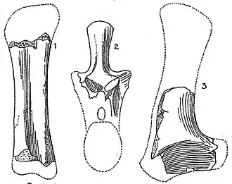 De botten zijn beschadigd en wat verweerd. Het dijbeen heeft een geschatte lengte van een halve meter. Het heeft een weinig ontwikkelde vierde trochanter, het aanhechtingspunt voor de staartspieren, wat Broom zag als een teken dat de staart slecht ontwikkeld was. De ruggenwervel heeft een geschatte hoogte van 45 centimeter en is sterk gepneumatiseerd, doortrokken van luchtholten. Het doornuitsteeksel is bedekt met een patroon van richels. De totale lengte van het dier was zo'n negen meter.