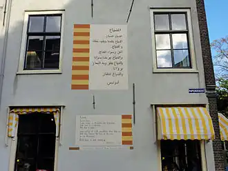 - In oktober 2013 werd in Leiden het gedicht Dayâ van Adonis in origineel en Engelse vertaling als muurgedicht aangebracht.