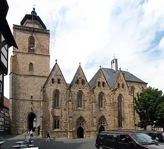 Achter deze drie gebouwen staat de Walpurgiskerk uit de tweede helft van de 13e eeuw. Het koor is van 1393. De toren, die in 1394 instortte, werd herbouwd, maar is pas in 1543 voltooid, en is in 1836 één verdieping lager gemaakt. Het gotische schip werd vanaf 1472 omgebouwd tot een hallenkerk. Charles Crodel maakte in 1963 glas-in-loodramen voor de kerk. Sinds 3 december 2006 heeft de kerk een carillon, dat iedere middag speelt.