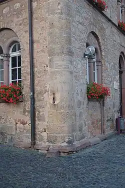Naast het raadhuis staat het wijnhuis, met op de hoek daarvan de schandpaal. Die heeft een afsluitbare ijzeren ring die wetsovertreders om de nek gesloten werd, zodat zij waren overgeleverd aan de hoon en spot van de andere inwoners. De trede van de schandpaal vertoont duidelijk slijtage.