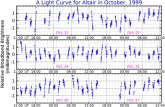 Altair behoort tot het 40-tal sterren dat dichter dan 5 parsecs bij de zon staat en behoort met sterren als Sirius en Procyon dus tot onze naaste omgeving. De ster is een van de weinige waarvan de visuele diameter is bepaald, deze is ongeveer 0,0028 boogseconden. De ster heeft een grote eigenbeweging en verplaatst zich bijna een graad in 5000 jaar.[1] Tevens roteert de ster erg snel, eenmaal in de 10 uur, dat wil zeggen, 210 km/s aan de oppervlakte, wat de ster een afgeplatte vorm geeft.[1]