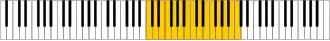 - De meeste piano's hebben 88 toetsen, met een bereik van A0 tot C8, dat is een ambitus van 7 octaven plus een kleine terts.