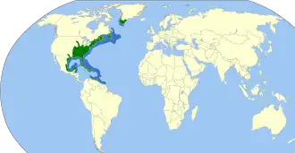 | Verspreidingsgebied van de Amerikaanse paling | |||||||||||||||