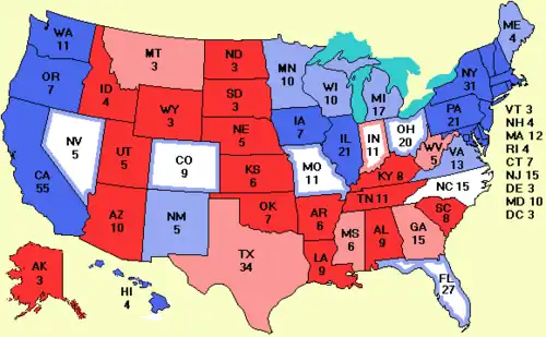 | Gewonnen staten | 28+DC+1 kiesman van Nebraska | 22 | 0 |