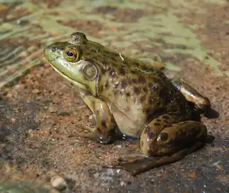 | Amerikaanse stierkikker IUCN-status: Niet bedreigd[1] (2020) | |||||||||||||
