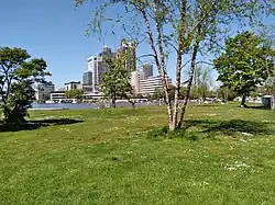 Zicht vanaf het Amstelkwartier op Park Somerlust, de Amstel en De Omval. -