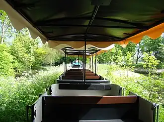 De trein bestaat uit een loc met maximaal drie open rijtuigen. De lengte van de perrons is hierop berekend. De uitlaatgassen van de locomotief worden met een slang onder de rijtuigen door geleid, zodat de passagiers niet in de walm hoeven te zitten.
