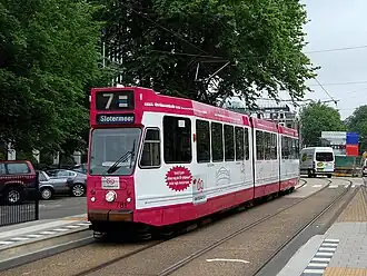 GVB 784 met LED-verlichting op lijn 7 in de Sarphatistraat.