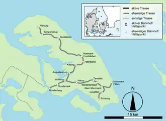 Het meterspoor net op het eiland Als had een lengte van meer dan 50 kilometer.