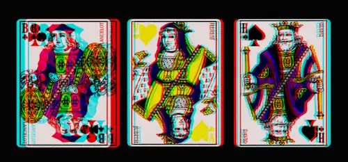 In de anaglyf zijn drie speelkaarten te zien die zonder anaglyfbril duidelijk even groot zijn, maar mét bril wordt het diepteperceptiesysteem van de hersenen aangesproken en lijkt het alsof de kaarten zich niet meer allemaal even ver van de waarnemer af bevinden. De hersenen leiden hieruit af dat de kaarten naar rechts toe groter worden, en men ziet de kaarten dan ook daadwerkelijk groter.