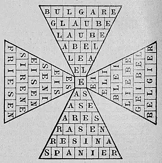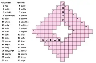 - ↑ Anagrammen, dr. Verschuyl, uitgeverij Kosmos (1992) ISBN 90 215 1956 9