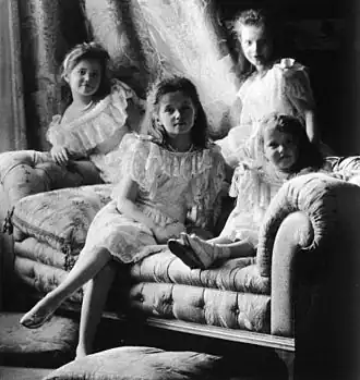 Olga Nikolajevna van Rusland (1895-1918) | Tatjana Nikolajevna van Rusland (1897–1918) | Maria Nikolajevna van Rusland (1899-1918) | (1901-1918) | Aleksej Nikolajevitsj van Rusland (1904–1918) | |||||||||||||||||||||||||||||||||||||||||||||||||