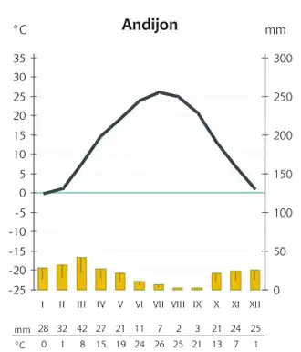 Het klimaat in de provincie is sterk continentaal met koude winters en hete zomers.