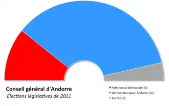 De Democraten voor Andorra wonnen de verkiezingen met een absolute meerderheid waardoor Antoni Martí tot nieuwe eerste minister werd gemaakt.
