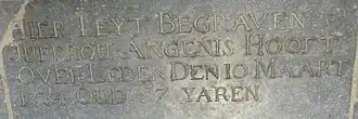 Aan het einde van haar leven woonde Angenis Hooft in Rijswijk. Zij bezat nog steeds de twee panden aan de noordzijde van de Leliegracht.
