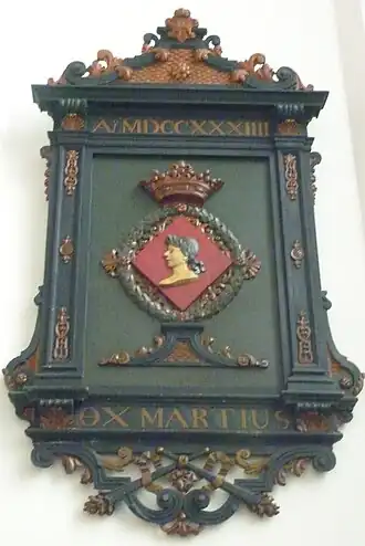 Het rouwbord werd in 1795 op last van het Franse bestuur uit de kerk verwijderd. Regent Theodorus Otto Becker bracht het toen naar het hofje. Rond 1906 is het aangeboden aan de Grote Kerk en vervolgens aan het Gemeentemuseum, dat toen nog was gehuisvest in de Sint Sebastiaansdoelen, het pand waarin tegenwoordig het Haags Historisch Museum is gevestigd. Geen van beide was geïnteresseerd in een verwaarloosd bord. Ten slotte ging het wapenbord naar Jhr Gustaaf Willem Joan Hooft van Woudenberg (1866-1945), die met zijn vrouw Johanna Petronella de Pesters op Huize Ter Wege in Huis ter Heide woonde. Hij liet het bord in 1907 restaureren, het vergane fluweel verwijderen en het hout zwart lakken. In 1937 overleed Johanna de Pesters en werd Ter Wege verkocht. Hooft bood toen het wapenbord aan het hofje aan, waar het sinds december 1937 heeft gehangen. Op 25 maart 2011 is het bord overgedragen aan de Grote Kerk, waar het vroeger bij het hoogkoor hing.