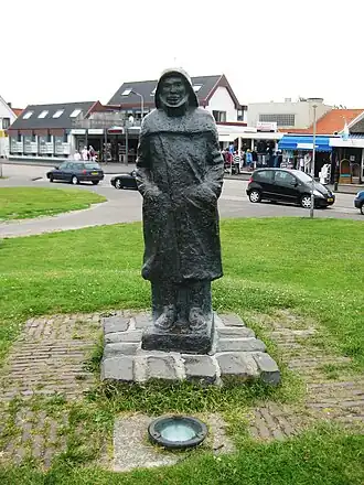 - ↑ Eric Claus maakte een kopie van het vervallen beeld van Op 't Land, die in 1979 op het Dorpsplein werd geplaatst. Het huidige beeld is een bronzen afgietsel, dat in 1998 werd onthuld. Zie: "De Visserman (III)", Mens & Dier in Steen & Brons. Gearchiveerd op 16 oktober 2021.