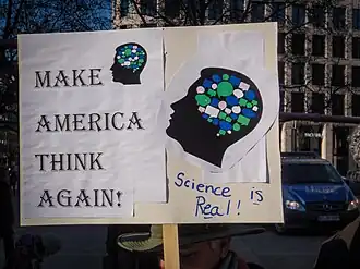 President Trump wordt vaak aangehaald als een voorbeeld van post-truth politics. Deze term impliceert dat wetenschappelijke bevindingen van secundair belang zijn om als politicus de boventoon te voeren. Inspelen op emoties van de publieke opinie - zoals bijvoorbeeld frustraties en onbegrip - en persoonlijke overtuigingen van de politicus zijn de centrale kernelementen bij post-truth politics. Dit leidt binnen de academische wereld tot veel protest. Zo werden er wereldwijd 600 Marches for Science gehouden, waarbij men opkomt in het belang van de wetenschappelijke integriteit.[1] Deze marsen werden niet toevallig op 22 april gehouden, de dag van de Aarde. Deze marsen vonden ook plaats in steden in België en Nederland.