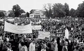 Een jaar na Tsjernobyl is er een grote 28-uurs blokkade van de kerncentrale in Borssele onder het motto: Nooit Meer Tsjernobyl – Borssele Dicht! Duizenden mensen zijn in dat weekend actief en nemen deel aan de blokkade of de demonstratie op zondag. In de blokkade-nacht vinden er hevige confrontaties plaats tussen ME en een groep die aangeduid wordt als 'de Autonomen'. Het blijkt de laatste massale directe actie te zijn, een jaar later, in 1988, is er nog een demonstratie in Gasselte tegen de opslag van radioactief afval in zoutkoepels van 3000 mensen.