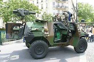 - Voertuig dat geleide antitankraketten kan afvuren: soms een jeep, meestal een speciaal pantservoertuig.