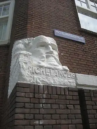 - Michelangelo (1928) - Ettringer tufsteen reliëf, Michelangelostraat 29 (ook de beeldhouwer Jaap Kaas vervaardigde een Michelangelo, Michelangelostraat 27)