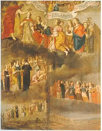 In opdracht van Antonia van Württemberg maakte de schilder Johann Friedrich Gruber tussen 1659 en 1663 een triptiek. De achterkant van het drieluik (de kant die zichtbaar is als de luiken gesloten zijn) toont een stoet vrouwen die het paradijs binnengaan. Antonia is zelf afgebeeld als Sulamith, de bruid uit het Bijbelse Hooglied, die aan het hoofd van de stoet gaat. Haar zusters zijn afgebeeld als de allegorische figuren Hoop en Geloof. Als het drieluik geopend is wordt een schilderij zichtbaar van één vrouw die het paradijs binnengaat. Het triptiek heeft een formaat van 6,50 bij 5,10 meter.[3]