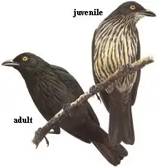 | link een volwassen Micronesische purperspreeuw en recht een juveniel. | |||||||||||||