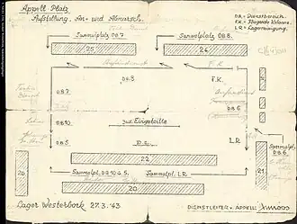 Dagelijks werden alle personen geteld in het kamp. Hiervoor werden alle gevangenen uit hun barakken gehaald en opgesteld in rijen. Bijna alle architecten van de kampen hadden in een speciale appelplaats (Appellplatz) voorzien, die was bedoeld voor de vaak duizenden gevangenen. Dit plein was vaak goed verlicht en lag centraal in het kamp. Het appel werd afgenomen terwijl de gevangenen moesten staan.