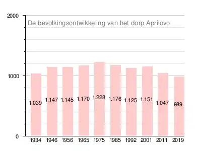 In tegenstelling tot de naburige dorpen is de bevolking van het dorp Aprilovo in de periode 1934 en 2019 vrij stabiel gebleven. Op 31 december 2019 werden er 989 inwoners in het dorp geregistreerd, een afname vergeleken met het maximum van 1.228 personen in 1975.