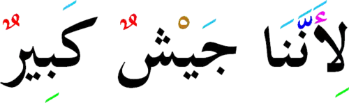 - ع – ʿ of 3 (dit teken maakt de letter waar het voor staat zwaarder van klank - indien het woord hiermee eindigt geldt dit voor de laatste letter van het woord)