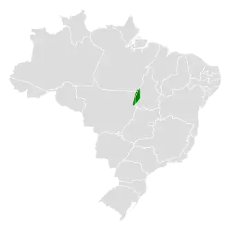 Deze soort komt voor in zuidwestelijk Brazilië langs de rivier de Araguaia. De leefgebieden liggen in vochtig tropisch bos en gebieden met struikgewas tot op 1000 meter boven zeeniveau.[1]