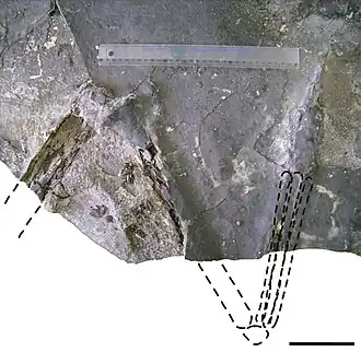 Het holotype, MPSC R 2089, is gevonden in een laag van de onderste Romualdoformatie die dateert uit het Aptien. Het bestaat uit een gedeeltelijke rechterachterpoot. Bewaard zijn gebleven de onderzijde van het dijbeen, de bovenste helft van het scheenbeen, de schachten en onderste uiteinden van het eerste, tweede, derde en vierde middenvoetsbeen, het eerste kootje van de eerste, tweede en derde teen, het eerste, tweede, derde en vierde kootje van de vierde teen en de eerste, tweede en derde voetklauw. De achterpoot ligt in verband. Vermoedelijk was meer van het skelet aanwezig maar bij het breken van de leisteen verloren gegaan. Het dijbeen en het scheenbeen zijn sterk platgedrukt maar de voetelementen zijn relatief driedimensionaal aanwezig. Het betreft een jong of jongvolwassen dier, gezien de groeilijnen vier jaar oud. Het is de enige theropode die uit de onderste Romualdoformatie bekend is.
