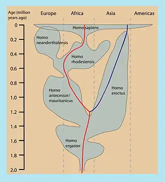 | 2,5 - 1 Ma | Paranthropus | P. aethiopicus · P. boisei · P. robustus |