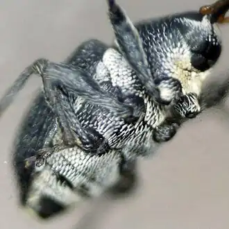 Mannetjes zijn iets kleiner (1,6-2,2 mm) dan vrouwtjes (1,6-2,4 mm).