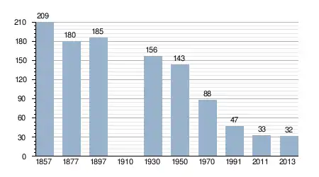 - Bron: INE, 1857-2011: volkstellingen
