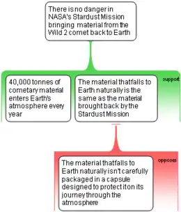 - "Er is nog nooit een raaf gezien die niet zwart was, dus alle raven zijn zwart" is "Er is nog nooit een raaf gezien, die niet zwart was" het argument. "Alle raven zijn zwart" is de conclusie die daaruit wordt getrokken, aangegeven door het woord "dus".