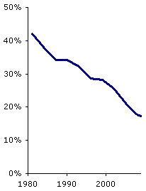 De wereldwijde inkomensarmoede is de laatste decennia sterk afgenomen. Het percentage mensen dat in extreme armoede leeft (minder dan 1,25 dollar per dag) is tussen 1981 en 2005 afgenomen van 52 procent naar 26 procent.[10] De vooruitgang in inkomen ging gepaard met verbeteringen in sociale omstandigheden. De kindersterfte daalde sterk, de levensverwachting steeg en het analfabetisme nam af.