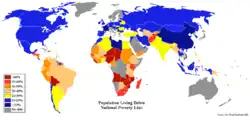 De armoedegrens verschilt per land. Ook worden in diverse landen geheel verschillende definities van het begrip armoede gehanteerd. Duidelijk is echter wel dat een aanmerkelijk deel van de wereldbevolking grote moeite heeft om in het bestaansminimum te voorzien. De Wereldbank hanteert als armoedegrens een inkomen van 1,90 dollar per dag (tot 2015 was dit 1,25).[1]