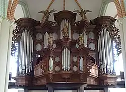 III/P | 39 | kast van het pedaal, prospekt, 6 registers, andere oude registers door Schnitger gehandhaafd; vandaag III/P/52 |