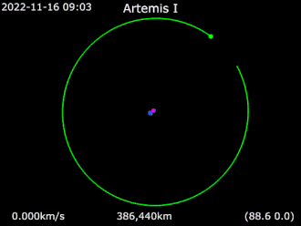 - ↑ (en) Artemis I Trajectory Burn en Route to the Moon, Youtubekanaal NASA, gelivestreamd op 16 november 2022