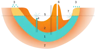 - Deze situatie doet zich in Nederland voor in gesloten watervoerende lagen in de Gelderse Vallei die gevoed worden door water vanaf de hoger gelegen Utrechtse Heuvelrug en de Veluwe.