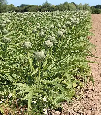 De vlezige schutbladeren van het gesloten bloemhoofdje worden als groente gegeten. Voor deze teelt worden stekelloze planten gebruikt, die vegetatief vermeerderd worden. In Nederland valt de oogst van de nog gesloten bloemhoofdjes in de maanden augustus en september. Na de oogst wordt de bloeistengel uit de plant gesneden. De planten moeten gedurende de winter vorstvrij worden gehouden door ze af te dekken met stro en plastic.