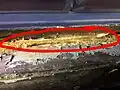 Vinylzeil | De van motieven voorziene bovenste (vinyl)laag bevat geen asbest, alleen de viltachtige onderste laag. Deze is ongeveer 1 mm dik en heeft een lichtgele kleur. | Voerzeil (vooral keukens, meterkasten en CV-kasten), behang | 15-30% chrysotiel of 30-60% chrysotiel | 2 |