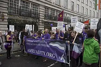 Aseksuele deelnemers aan de optocht van de WorldPride in Londen in 2012