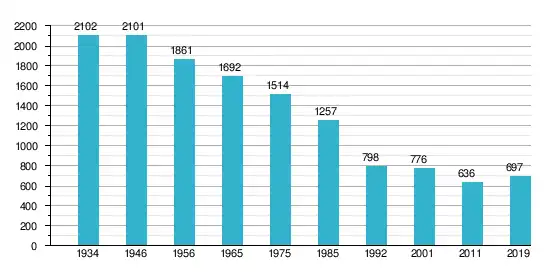Van de 636 inwoners die in februari 2011 werden geregistreerd, waren er 157 jonger dan 15 jaar oud (25%), terwijl er 102 inwoners van 65 jaar of ouder werden geteld (16%).[3]